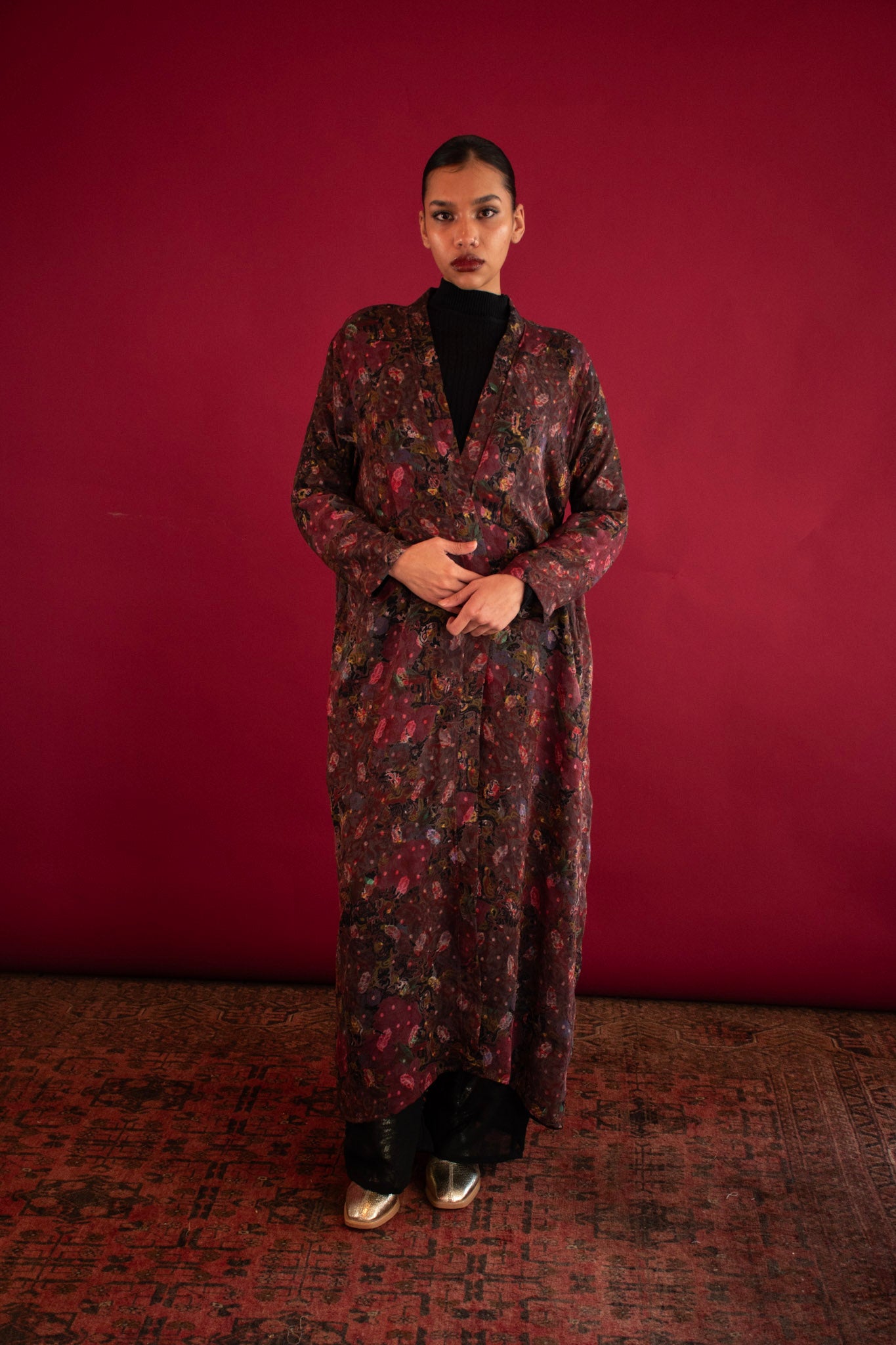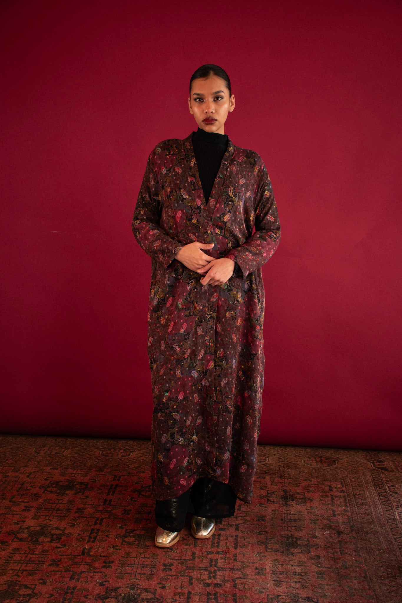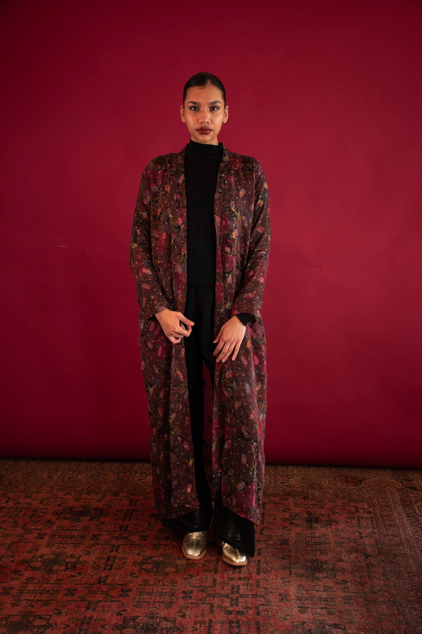 The Aya Kimono is a celebration of softness, movement, and effortless elegance. Crafted from feather-light silk with a delicate floral print drapes the body like a whisper, making it the perfect outer layer for transitional seasons and elevated everyday wear.