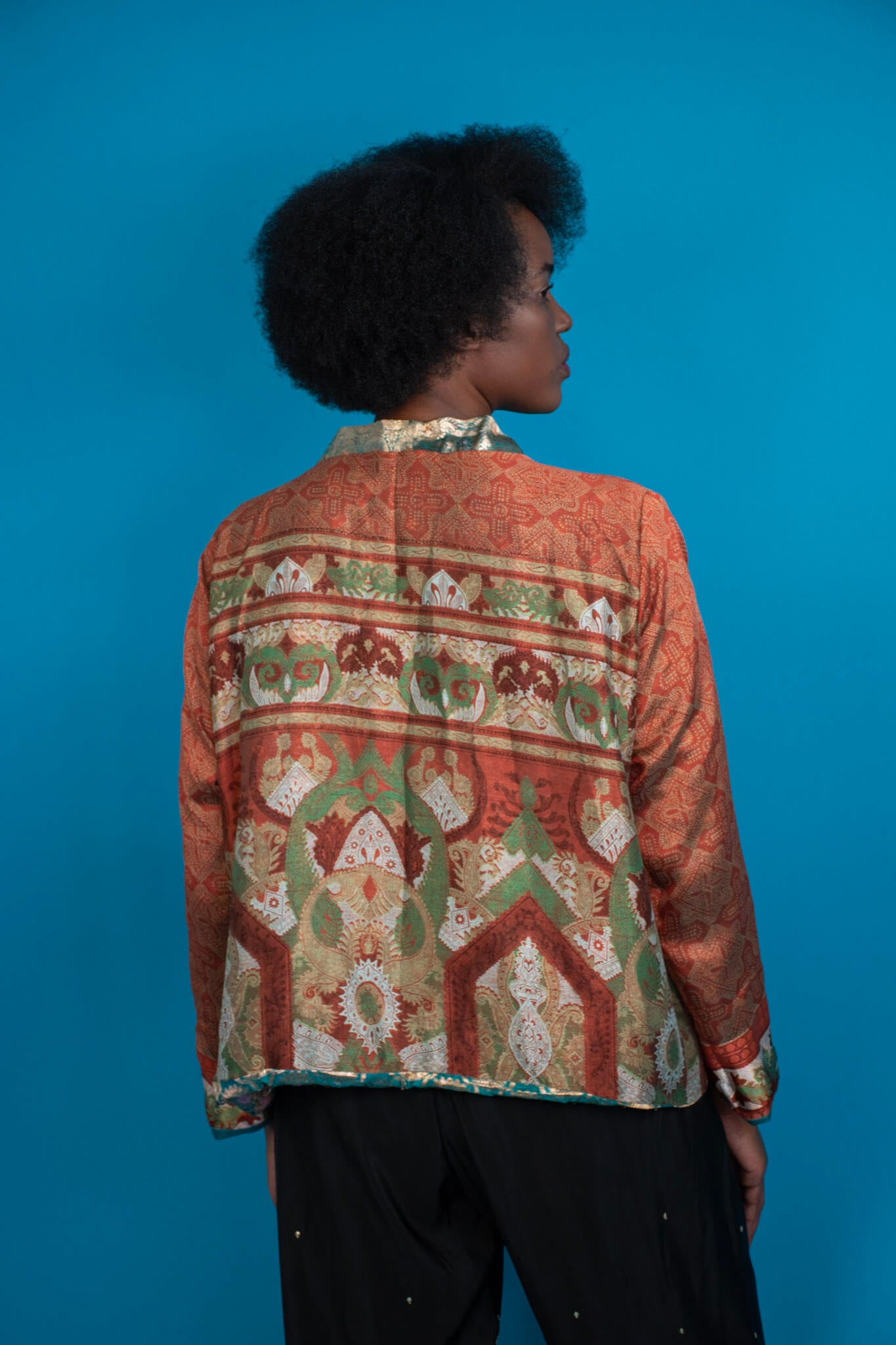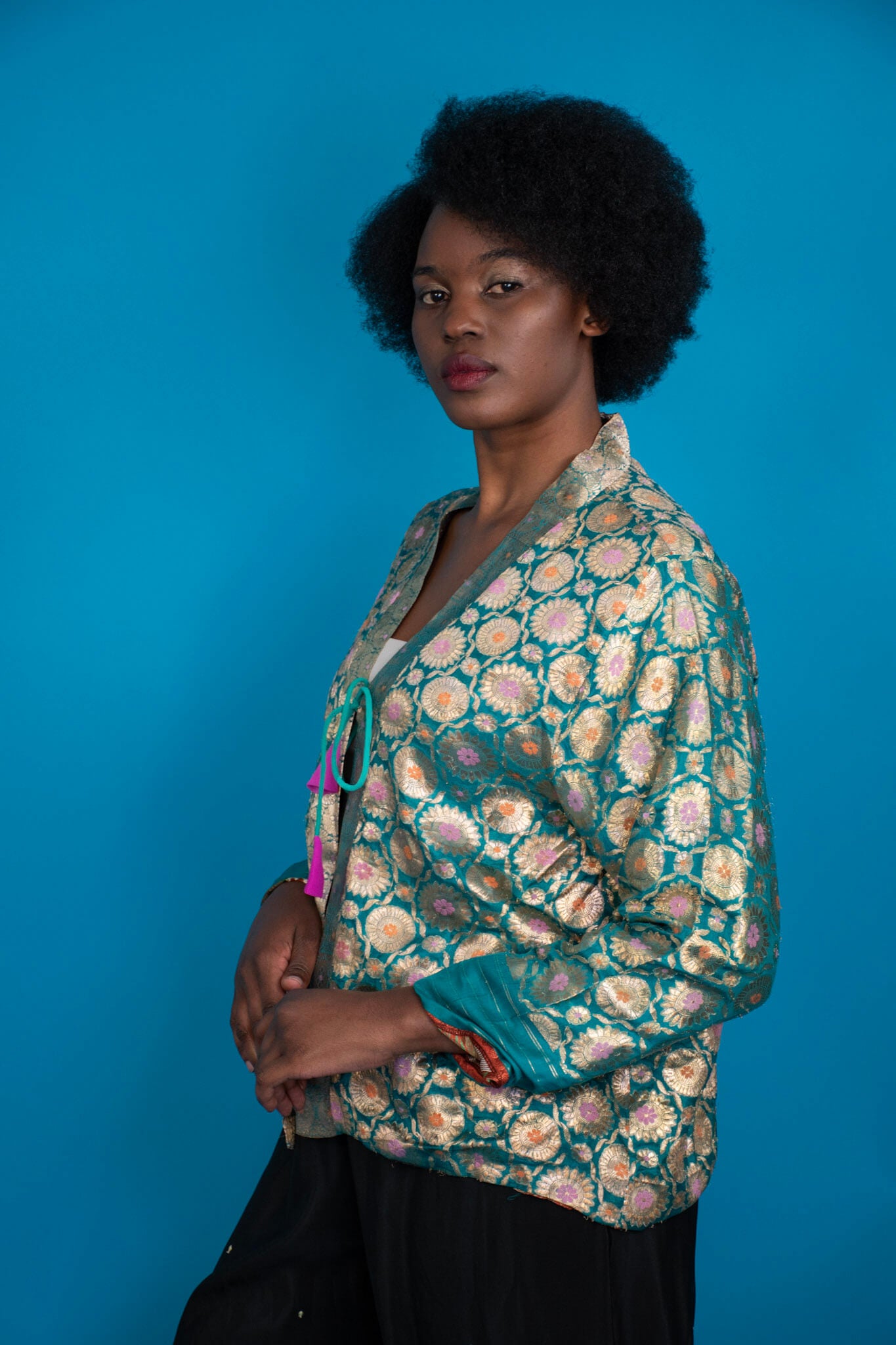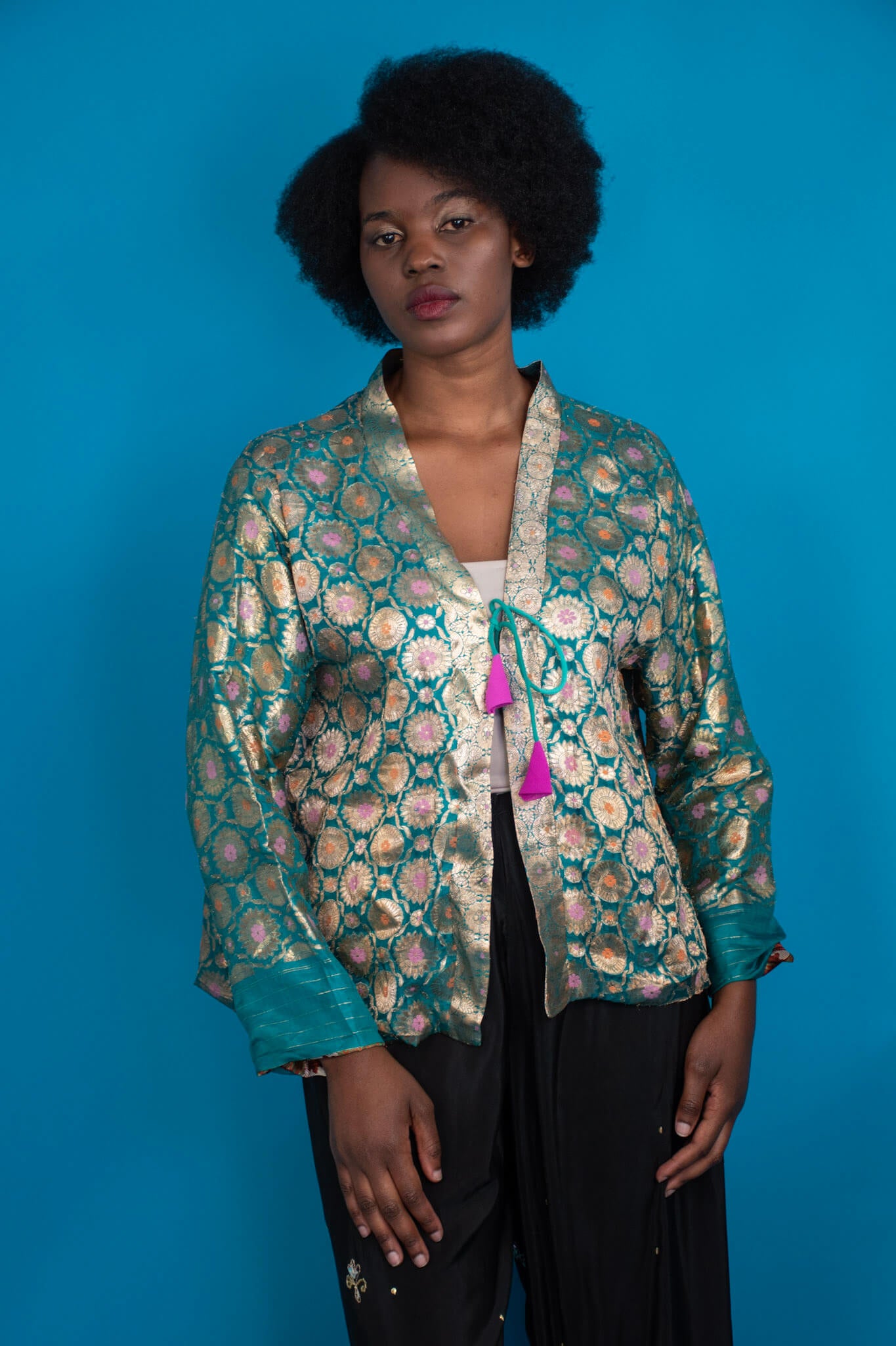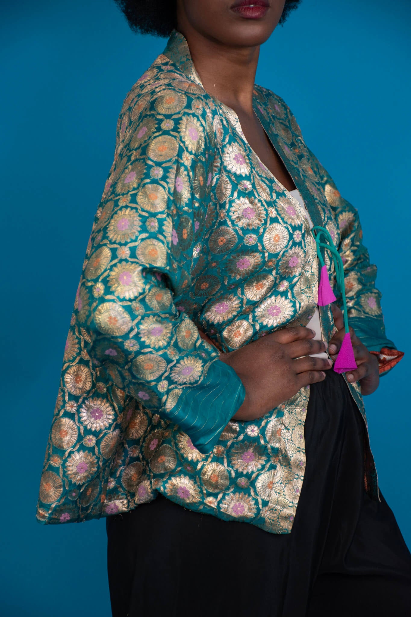 Thoughtfully designed, each Lulu Jacket is made using off-cuts from our production floor, embracing a zero-waste philosophy while transforming heritage textiles into contemporary luxury.