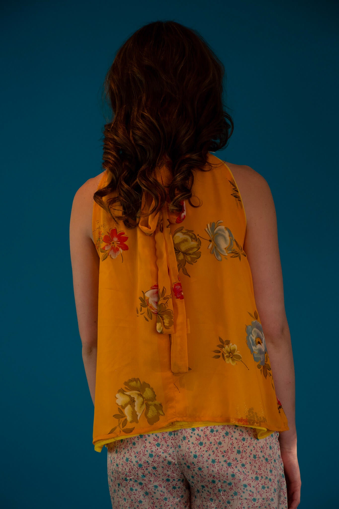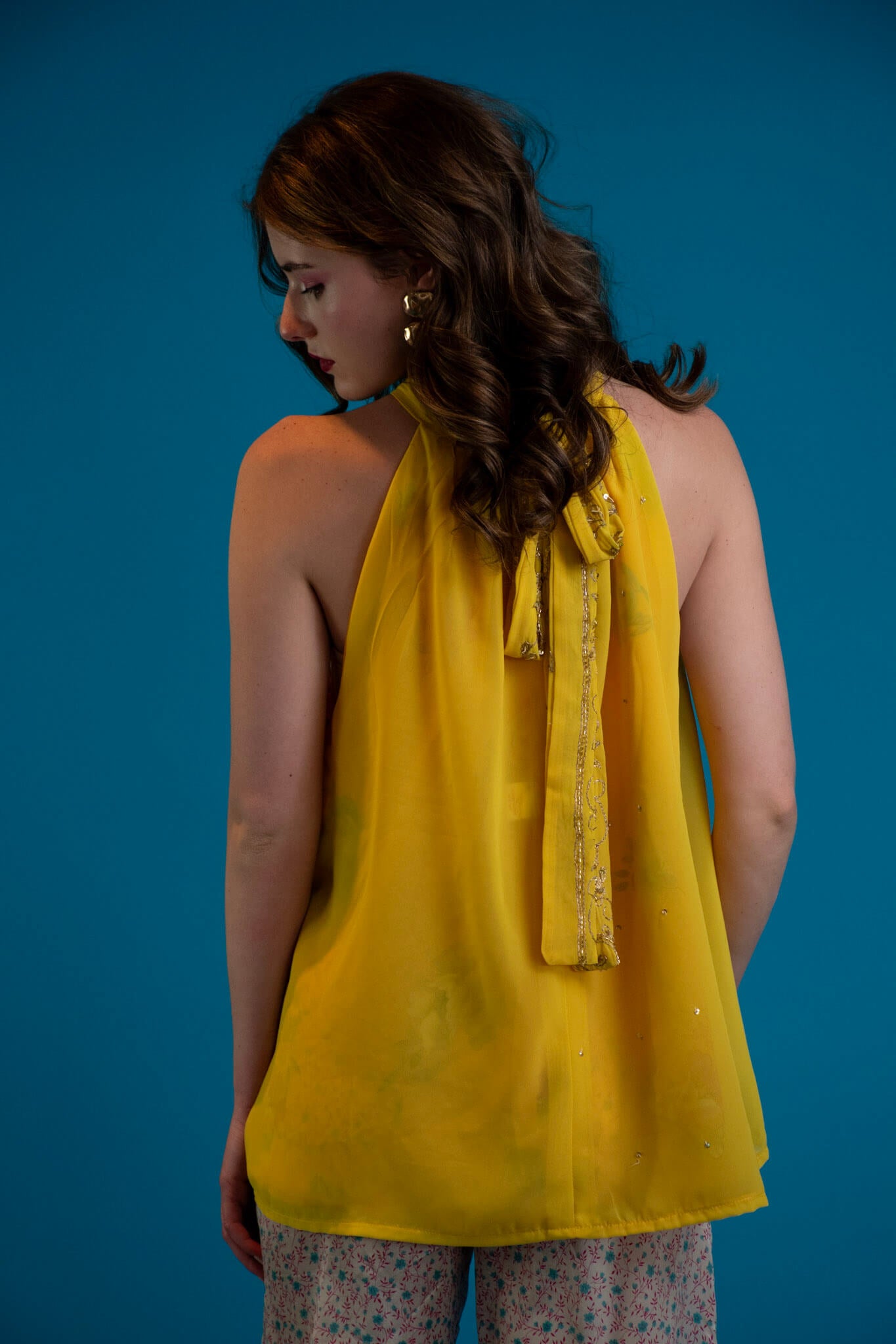 A celebration of colour and light, this reversible halter top captures the dream of endless summer. Crafted from printed chiffon with reverse-beaded detailing, each piece shimmers softly as you move - a touch of glam woven into effortless ease.